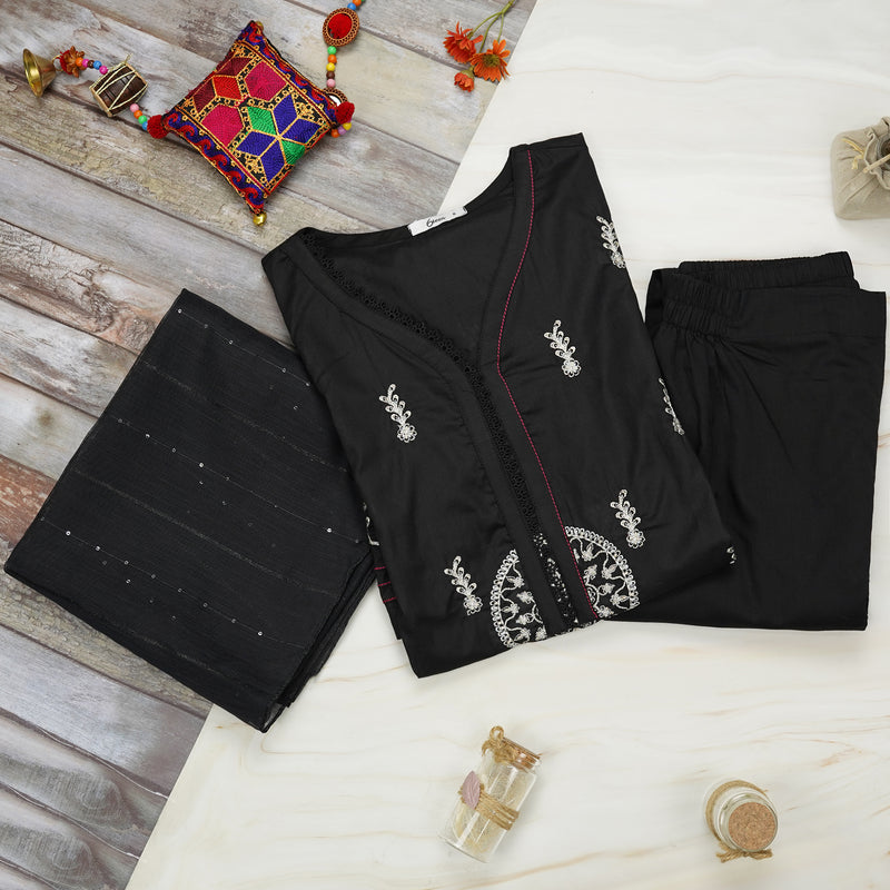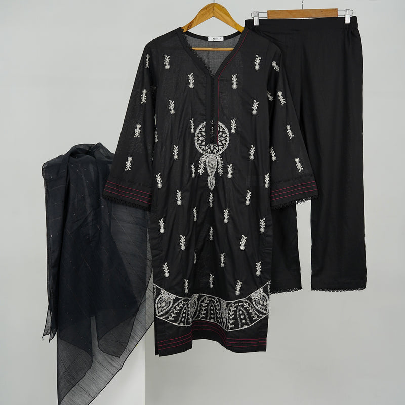 🧣 Dupatta: Black Zari lawn dupatta for a sophisticated touch