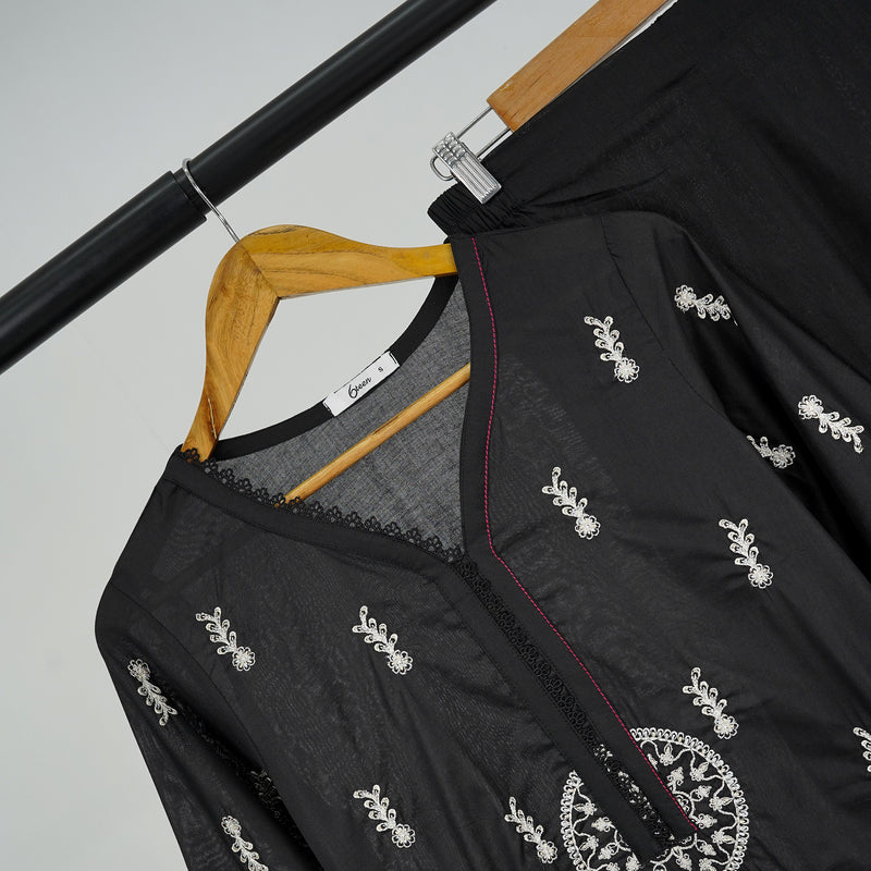 👚 Shirt: Black embroidered lawn shirt for an elegant and timeless look
