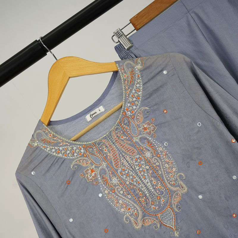 👚 Shirt: Grey embroidered lawn shirt for a sophisticated look