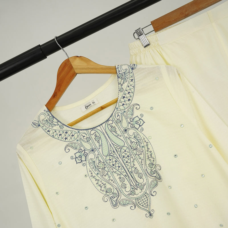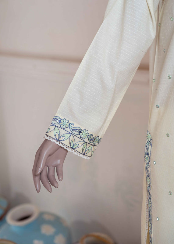 👚 Shirt: Elegant off-white embroidered lawn shirt for a timeless style