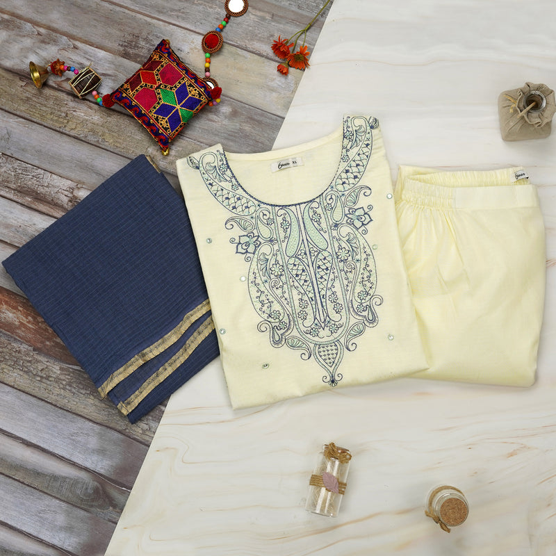 🧣 Dupatta: Beautiful blue Zari lawn dupatta to add a pop of color