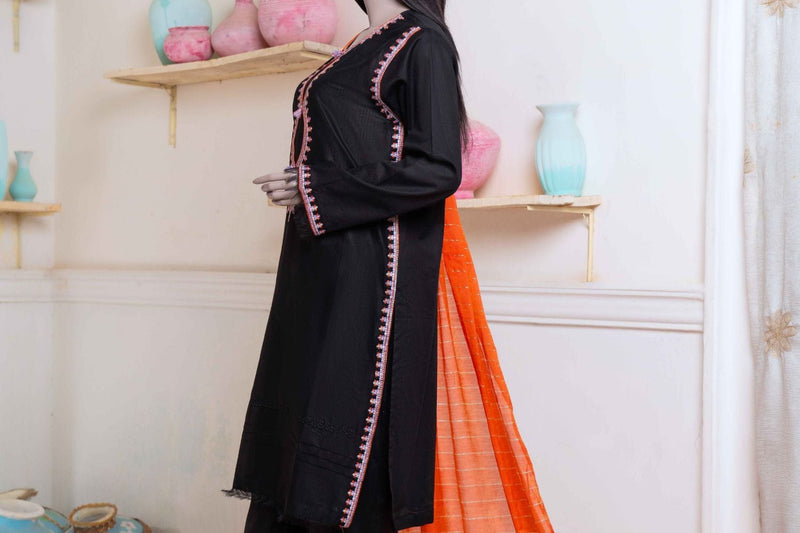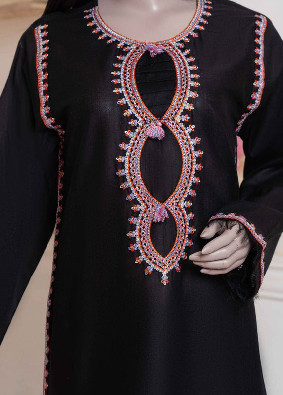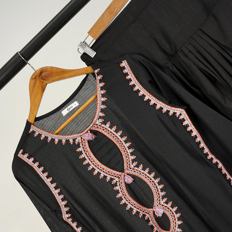 👗 Shirt: Elegant black lawn shirt with intricate embroidery