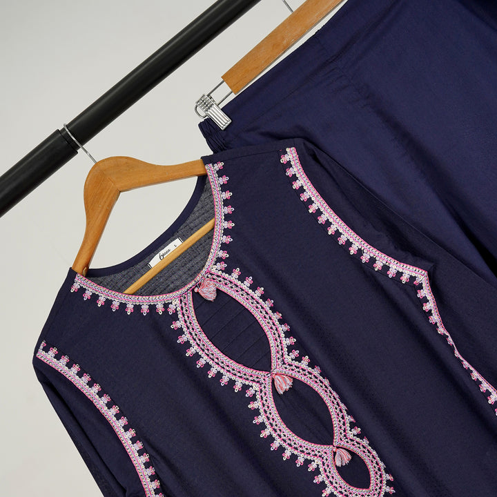๐ Shirt: Navy blue embroidered lawn shirt for a sophisticated look