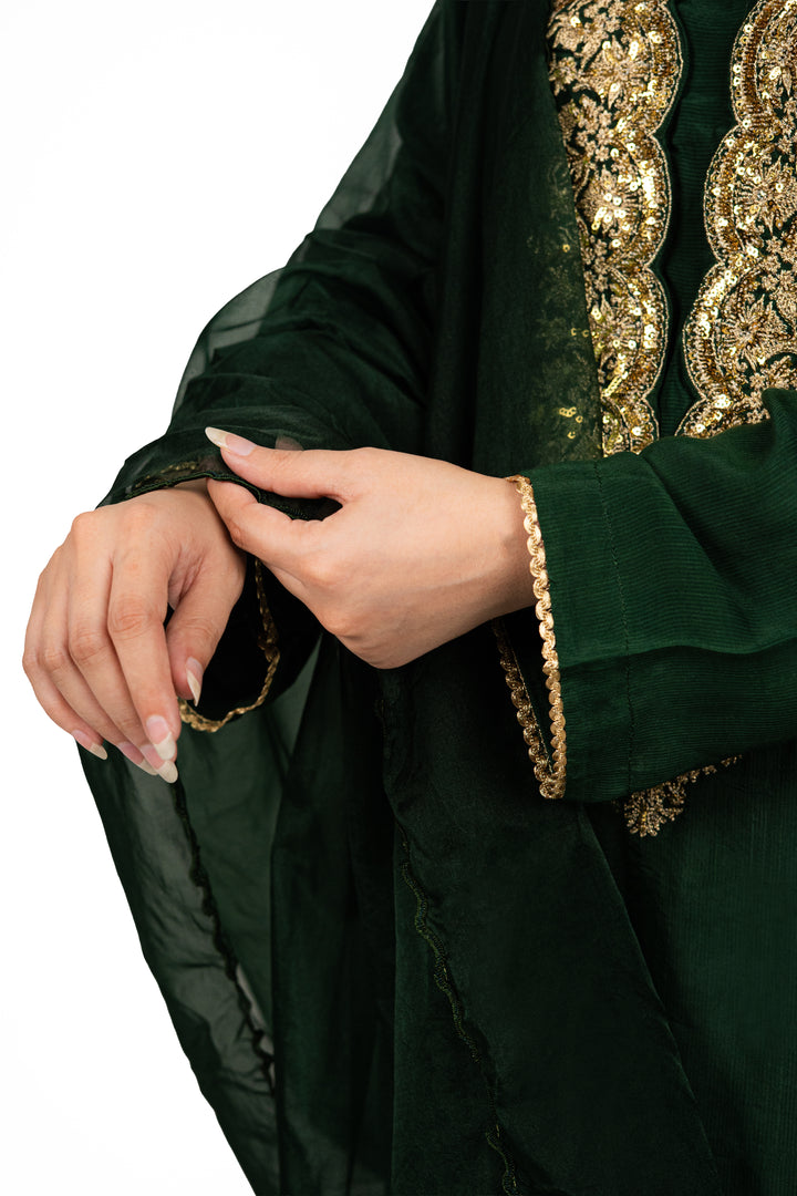 3 Pc Raw Silk Green Embroidered Suit