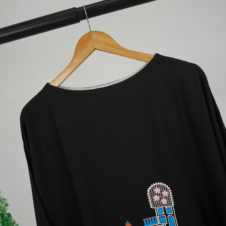 👚 Design: Loose-fit shirt with a chic boat neck, featuring intricate embroidery on the front