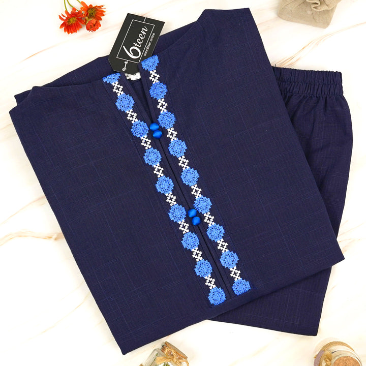 👚 Shirt Detail: Khadar shirt with elegant mauve embroidery on the neck and sleeves
